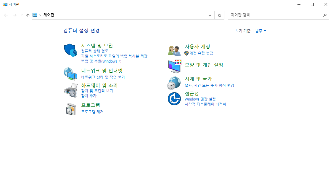 1. 제어판을 열어주시고 [장치 및 프린터 보기]