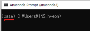 anaconda prompt를 켜면 base로 설정되어 있다.